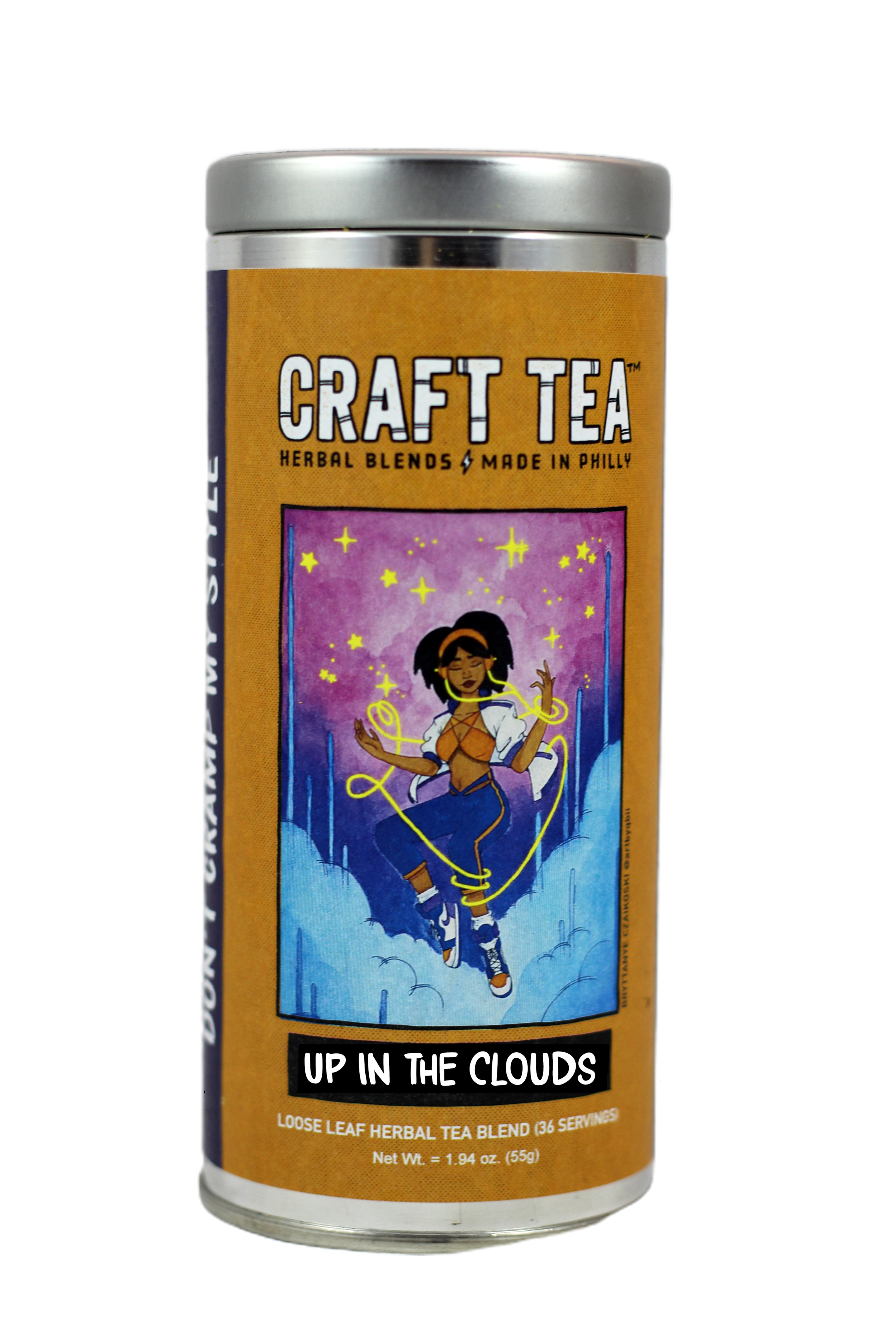 Up in the Clouds has new artwork as of December 2020! I love this piece done by Bryttanye Czaikoski, an artist I found browsing the South Street Art Mart in Philly. She does great illustration work, and as a matter of coincidence, was told years ago by her art teacher, “I could see this on a tea label one day.” How cool is that?!